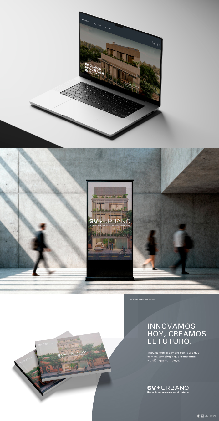 Para SV+ Urbano desarrollamos un trabajo integral de identidad y comunicación, partiendo de la creación del isologotipo y el sistema visual de la marca, hasta su aplicación en piezas clave como el brochure institucional y el sitio web. El proyecto buscó transmitir los valores de innovación, sustentabilidad, elegancia y profesionalismo que definen a SV+, construyendo una identidad contemporánea y premium. Cada pieza fue diseñada para reforzar el concepto de “sumar innovación, construir futuro”, acompañando el posicionamiento de la marca en el desarrollo inmobiliario urbano.